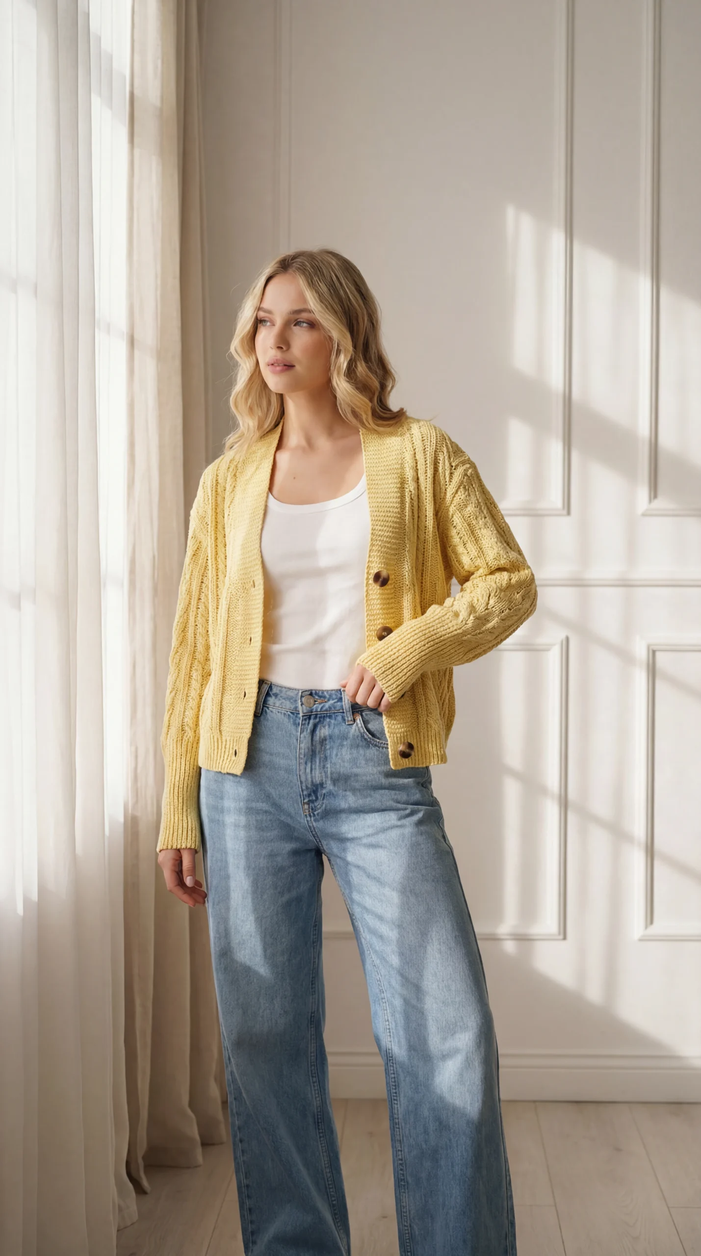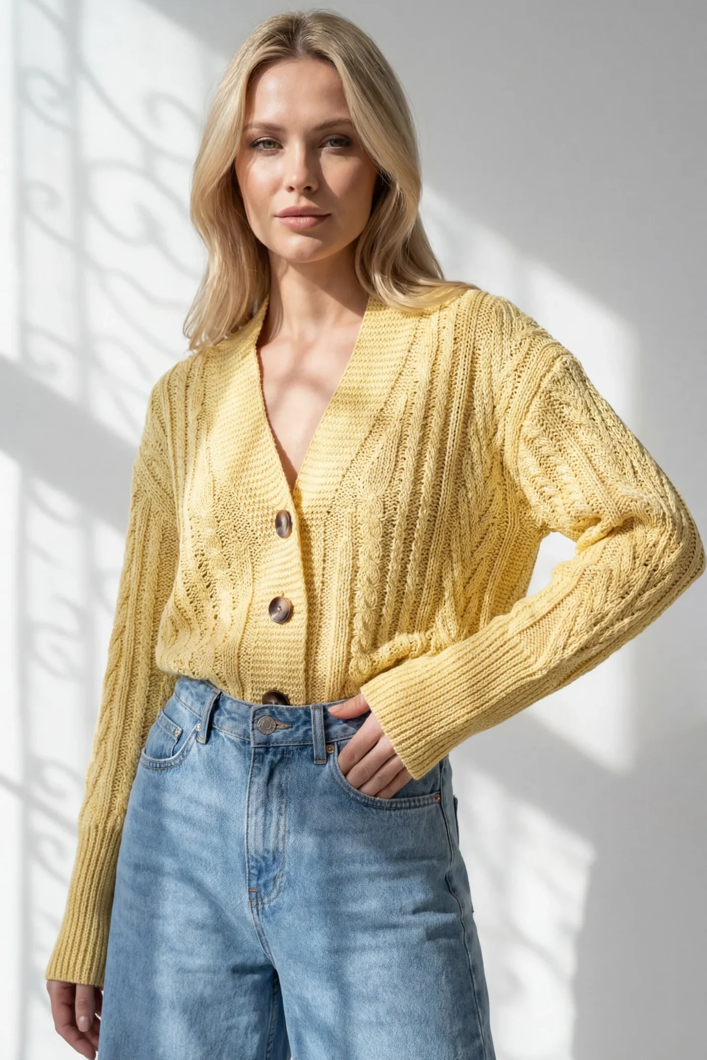 Ten wyjątkowy kardigan to połączenie klasyki i komfortu na co dzień. Wykonany z wysokiej jakości przędzy bawełnianej, jest miękki, oddychający i przyjemny w noszeniu przez cały dzień. Model zapinany na guziki zdobią efektowne warkocze, które nadają mu ponadczasowego charakteru i subtelnej elegancji.