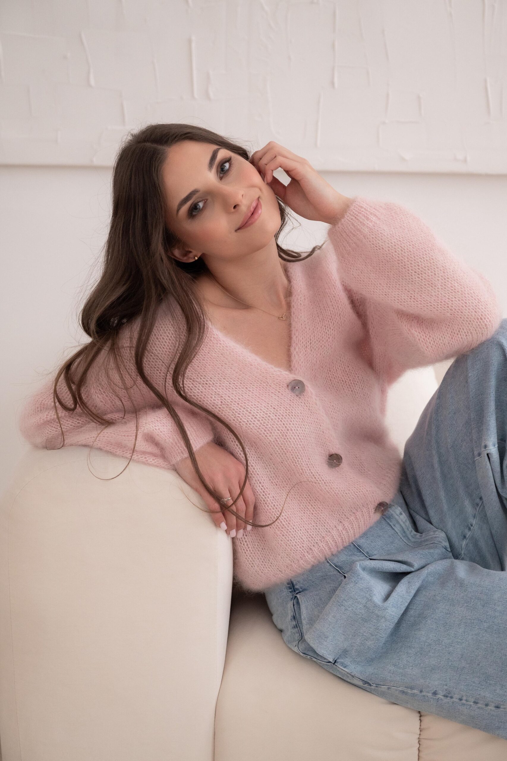 Krótki kardigan GINGER zapinany na guziki z masy perłowej, wykonany z luksusowej przędzy baby alpaka. Niezwykle miękki i lekki, a jednocześnie ciepły, delikatnie otula sylwetkę i zapewnia komfort noszenia przez cały dzień. Subtelny połysk guzików z masy perłowej dodaje całości szlachetnego charakteru. To ponadczasowy element garderoby, który doskonale dopełni zarówno codzienne, jak i bardziej eleganckie stylizacje.