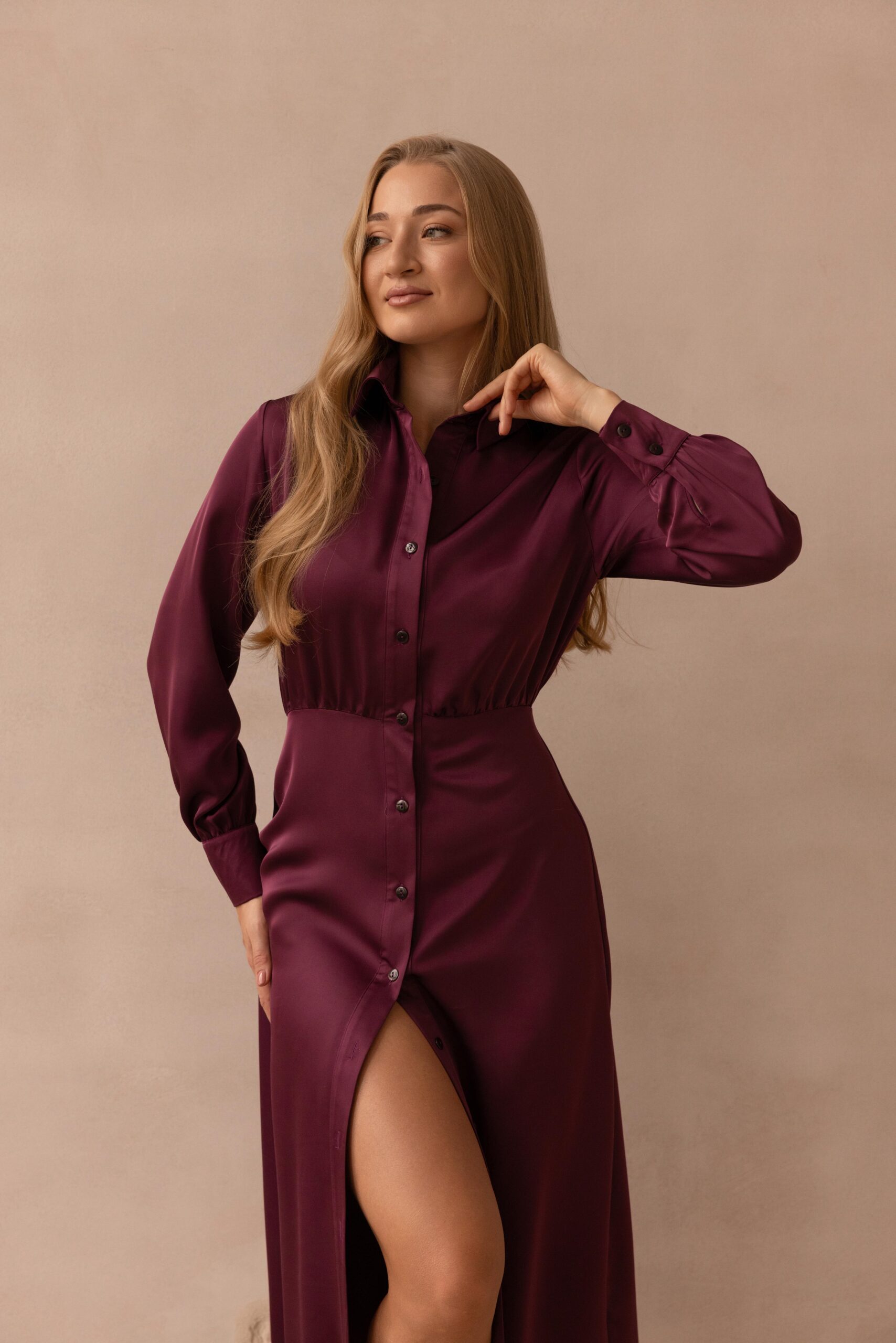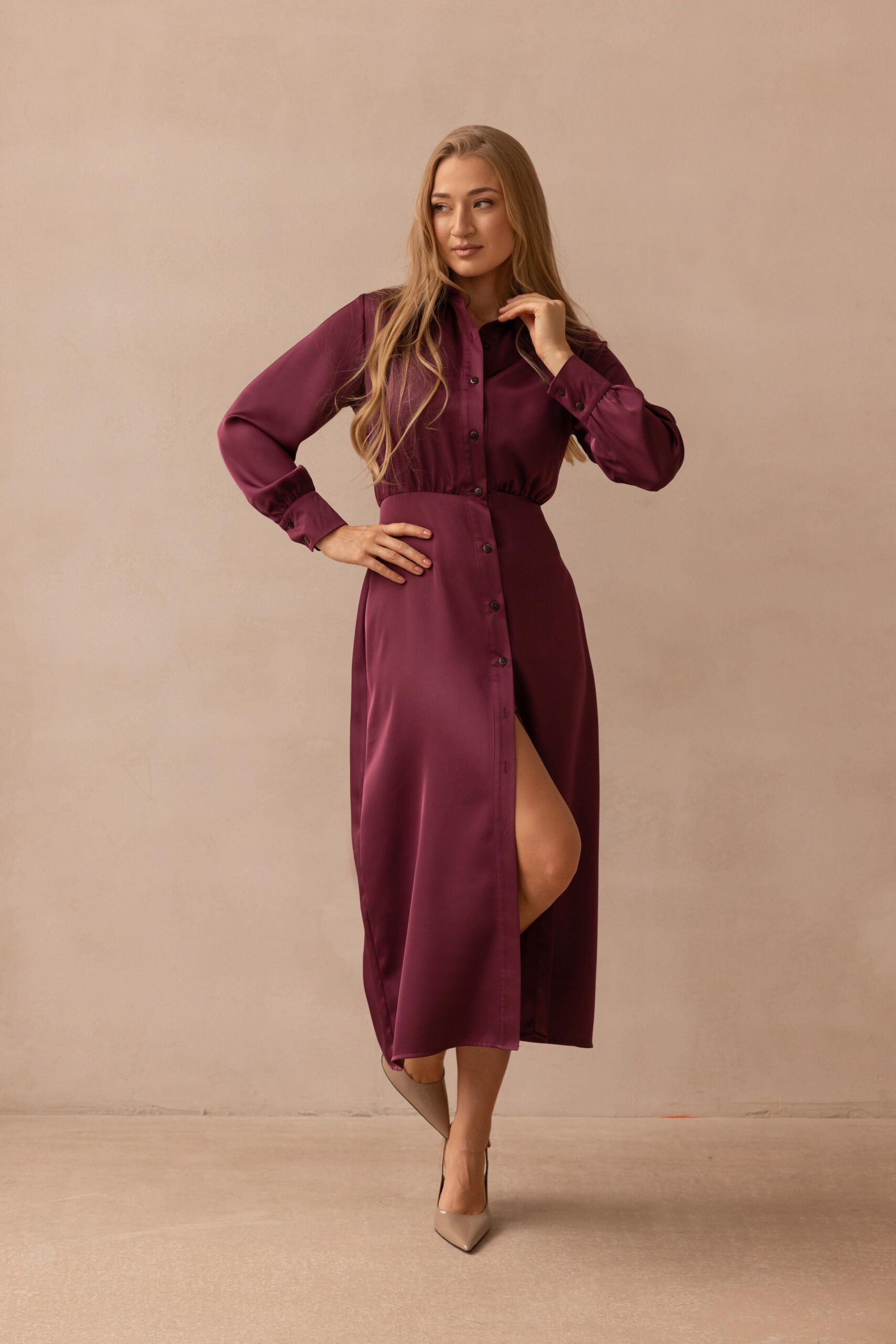 Ta elegancka sukienka midi została uszyta z przyjemnej w dotyku wiskozy z dodatkiem recyklingowanego poliestru, dzięki czemu łączy w sobie lekkość naturalnych włókien i trwałość materiałów z odzysku. Model subtelnie dopasowuje się w talii, podkreślając sylwetkę, a zapięcie na guziki na całej długości dodaje jej klasycznego, kobiecego charakteru. Delikatnie układa się podczas ruchu, sprawdzając się zarówno w codziennych stylizacjach, jak i na bardziej eleganckie okazje. Idealny wybór dla osób ceniących ponadczasowy styl i świadome podejście do mody.