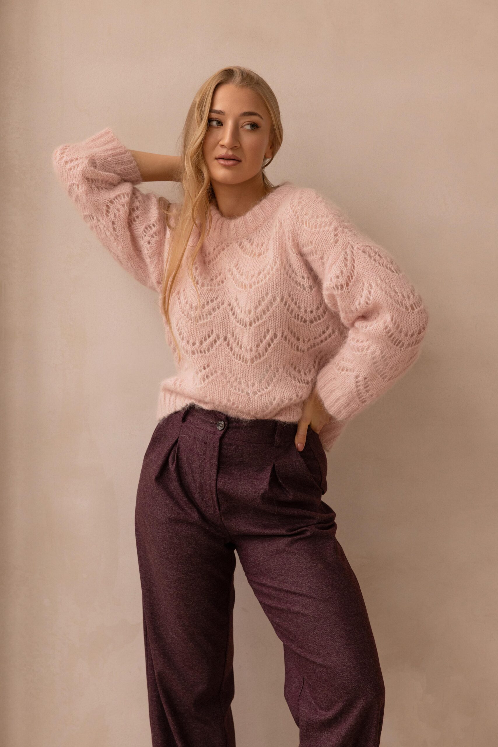 Miękki i otulający sweter wykonany z wysokiej jakości przędzy z superfine alpaki to połączenie komfortu i subtelnej elegancji. Delikatna, szara tonacja sprawia, że sweter jest niezwykle uniwersalny, a okrągły dekolt nadaje mu klasycznego charakteru. Rękawy z delikatnymi bufkami dodają kobiecego wyrazu, a wydłużone ściągacze podkreślają linię nadgarstków i nadają całości nowoczesnego sznytu. Lekki, a jednocześnie ciepły — idealny na chłodniejsze dni, zarówno do jeansów, jak i bardziej eleganckich stylizacji.