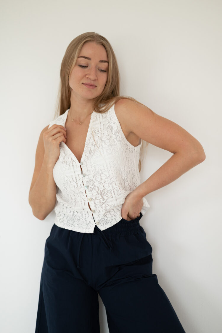 Krótki żakiet o klasycznym, kobiecym kroju, który subtelnie podkreśla sylwetkę. Wykonany z wysokiej jakości tkaniny, doskonale łączy elegancję z nowoczesnym stylem. Model zapinany na obciągane guziki, które dodają mu szyku i spójnego, dopracowanego wykończenia. Delikatny, błękitny kolor nadaje stylizacji świeżości i wyjątkowego charakteru, dzięki czemu żakiet świetnie sprawdzi się zarówno na specjalne okazje, jak i w codziennych, bardziej eleganckich zestawach.